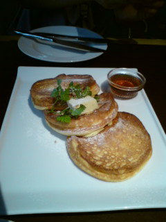 ホットケーキは、生地がモチモチで、メープルシロップも甘すぎなくて、美味しくて食べやすかったです。