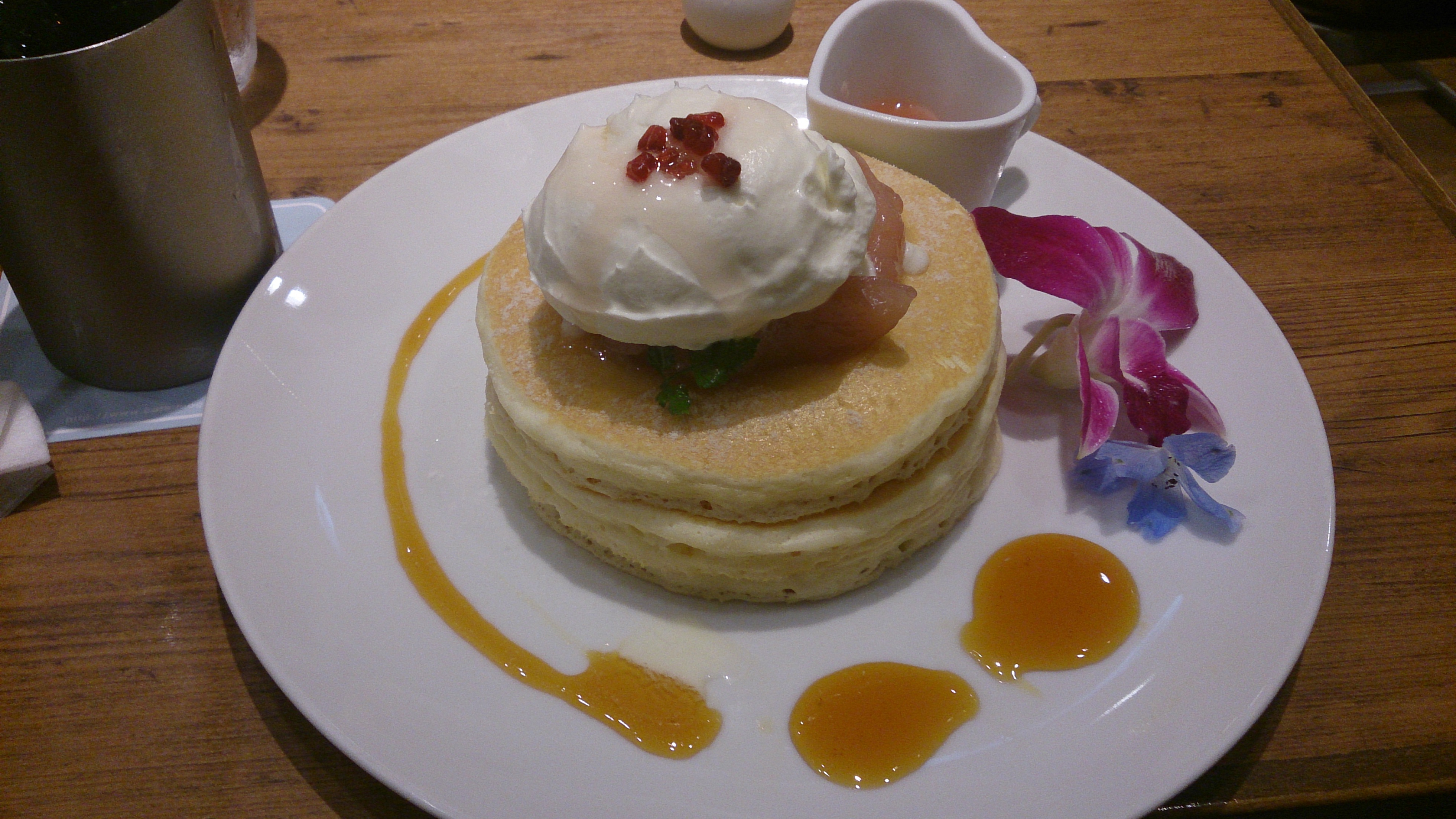 今日、桃のパンケーキを食べました。パンケーキを食べたのは久しぶりで…美味しかったです♪結構、ボリュームはあったのですが、意外とあっさりしていて、完食しました。