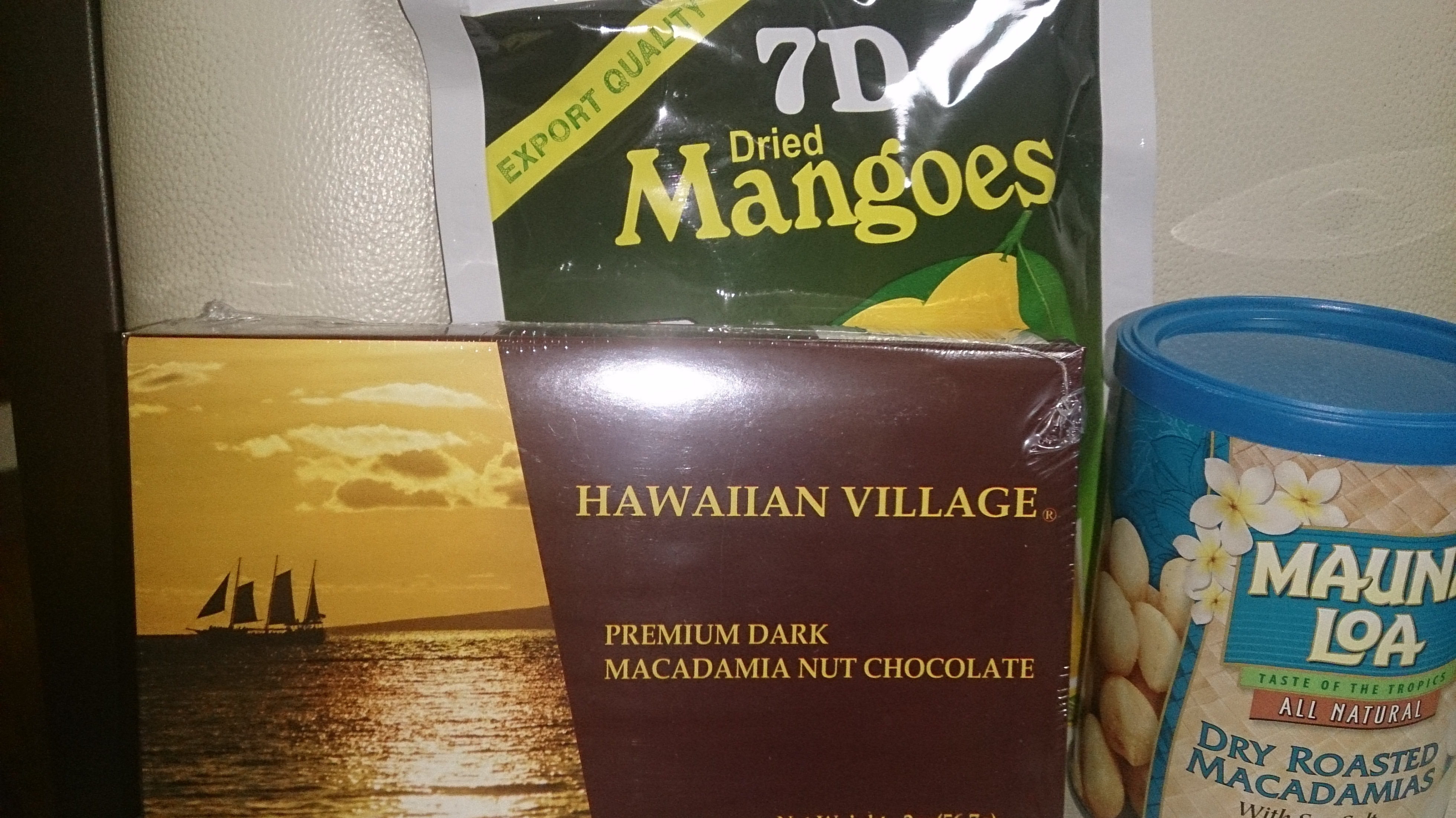 ドライマンゴー、マカデミアナッツ、マカデミアナッツのチョコレート、を頂きました。