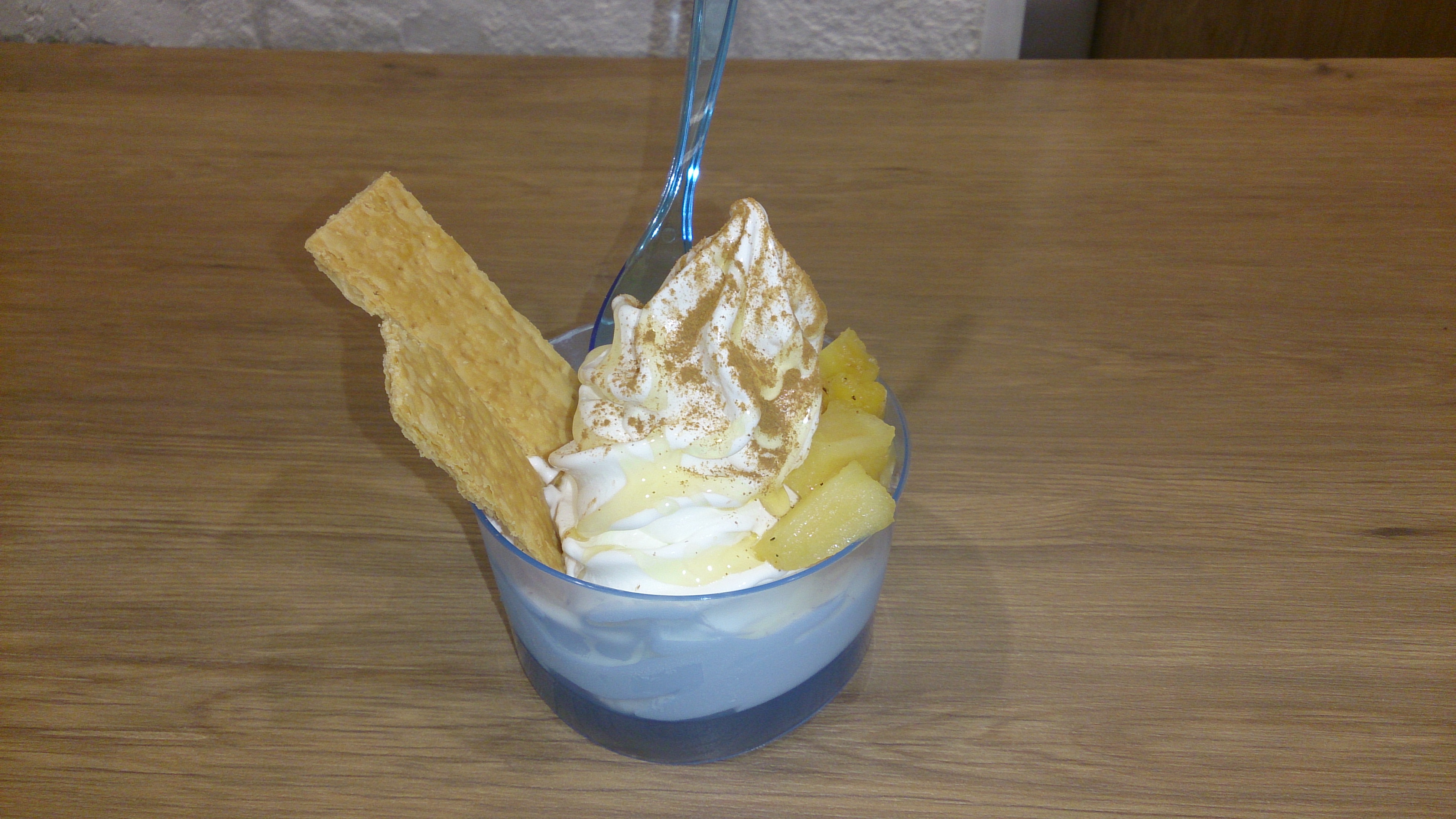 ヨーグルト味のジェラートに、ハチミツがかかっていて、アップルとシナモンがかかっていました。