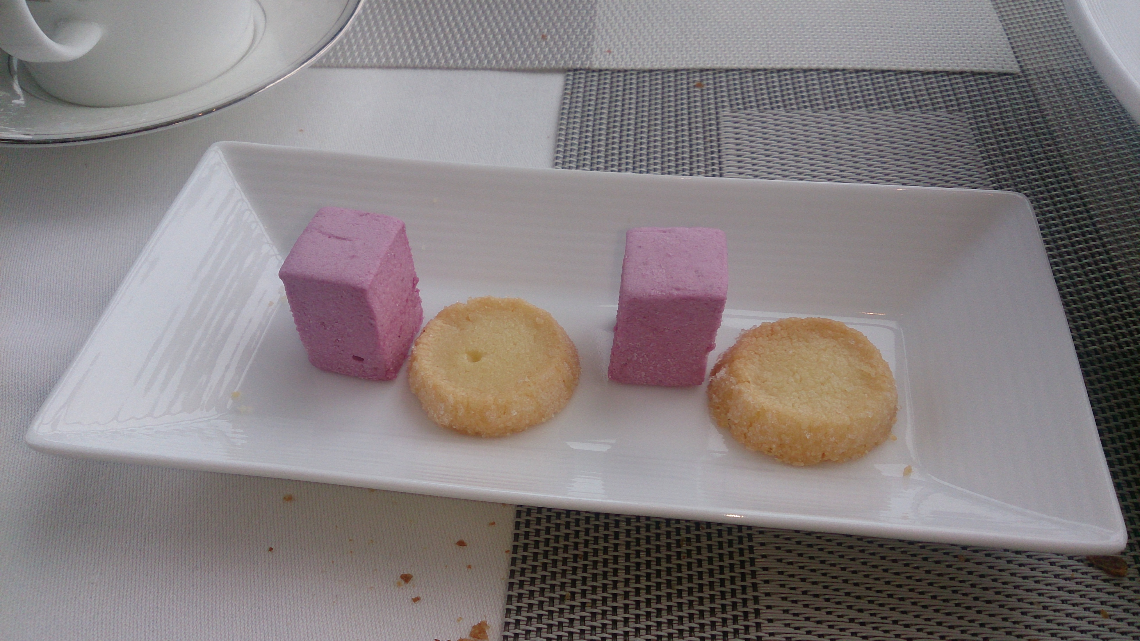 カシスの風味がした、上品な味の美味しいマシュマロに、バターの加減がちょうどいいクッキーで、どちらも美味しかったですね。