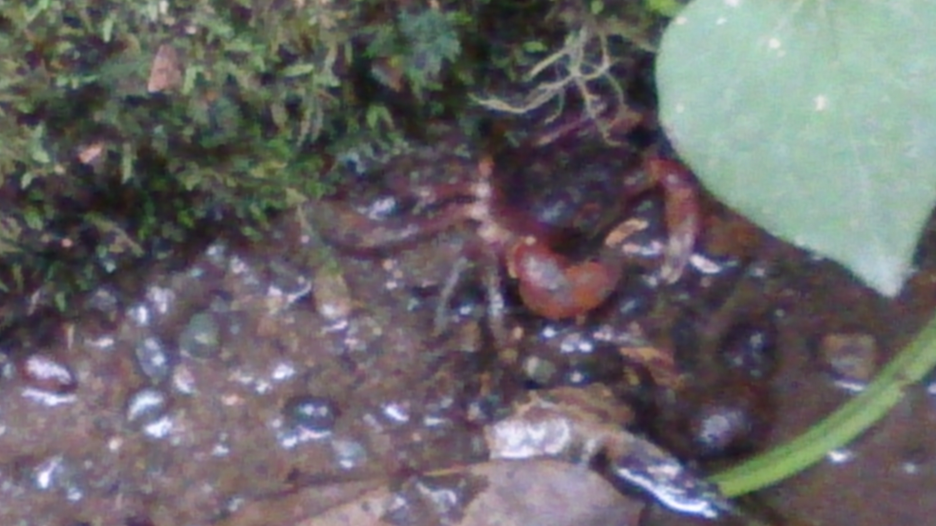 お参りを終えた後に、参道を歩いていると、小さな蟹さんが、何匹か歩いているのを発見しました。