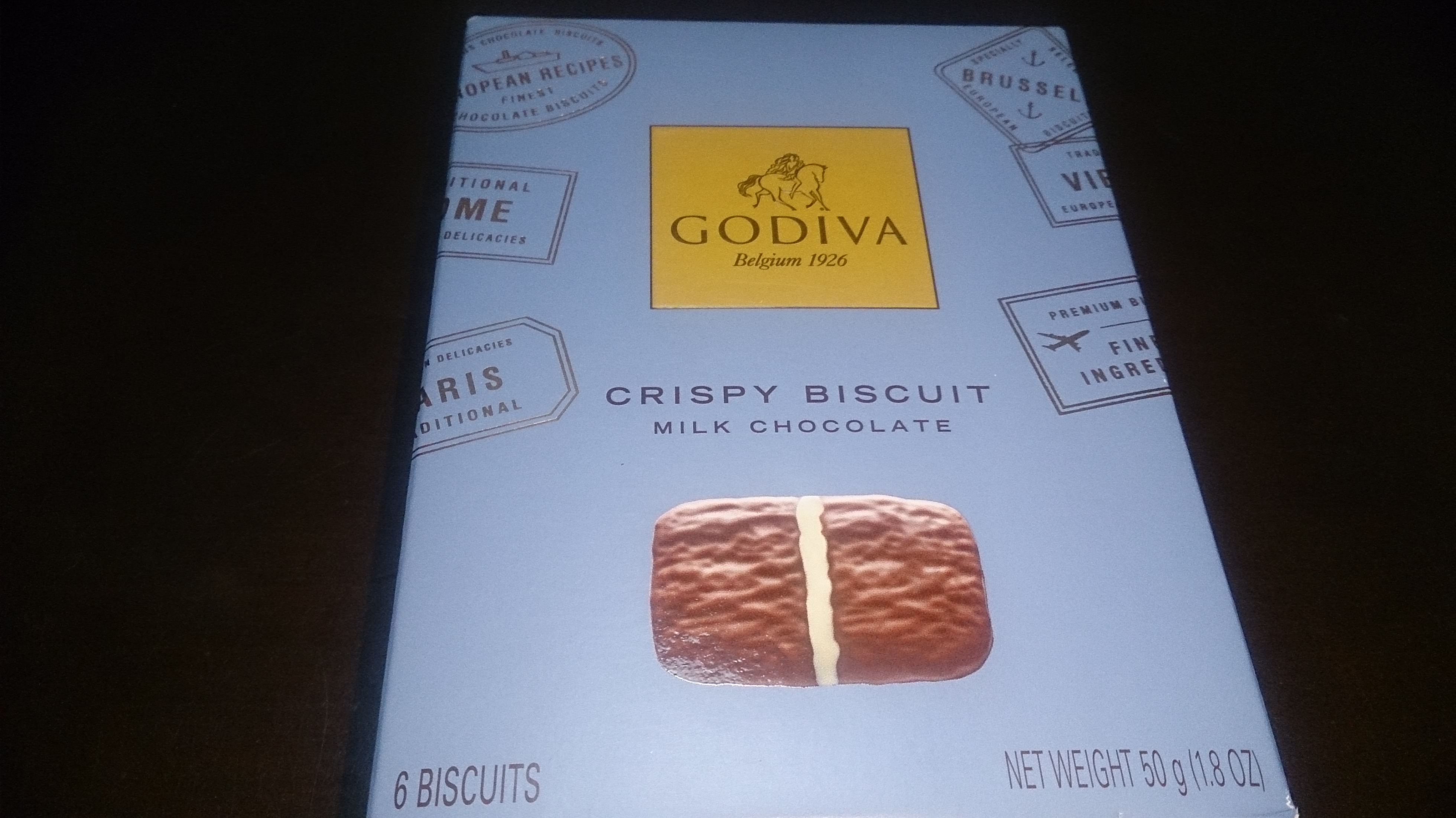 このチョコレート、裏にカロリーが表示されてあったのですが、6枚で230カロリーと、意外にも、低めでした。