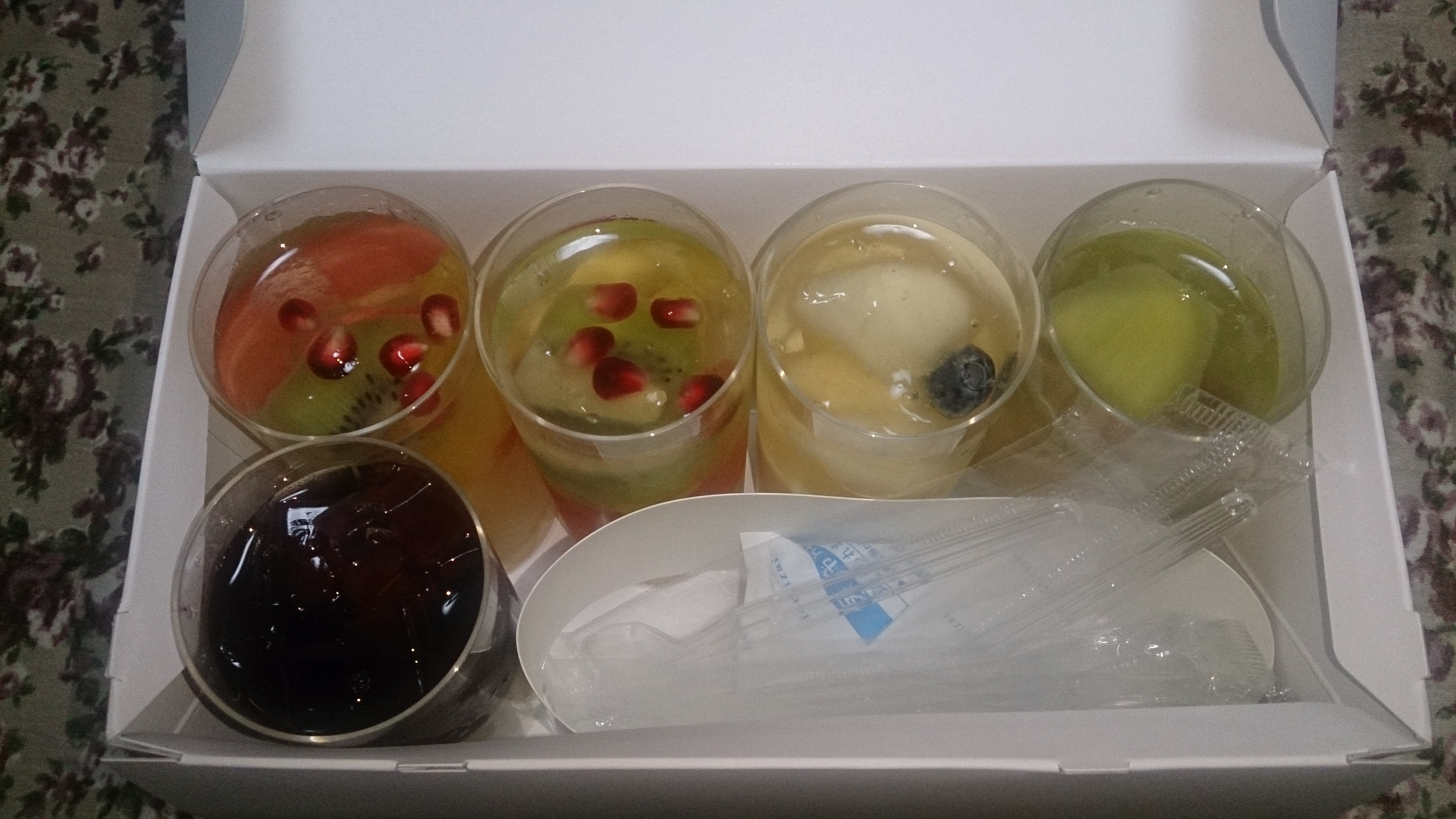 頂いたゼリー、ほとんどがどれも、違うお味だったのですが、どのゼリーも、フルーツがたくさん入っていて、とても美味しかったです。