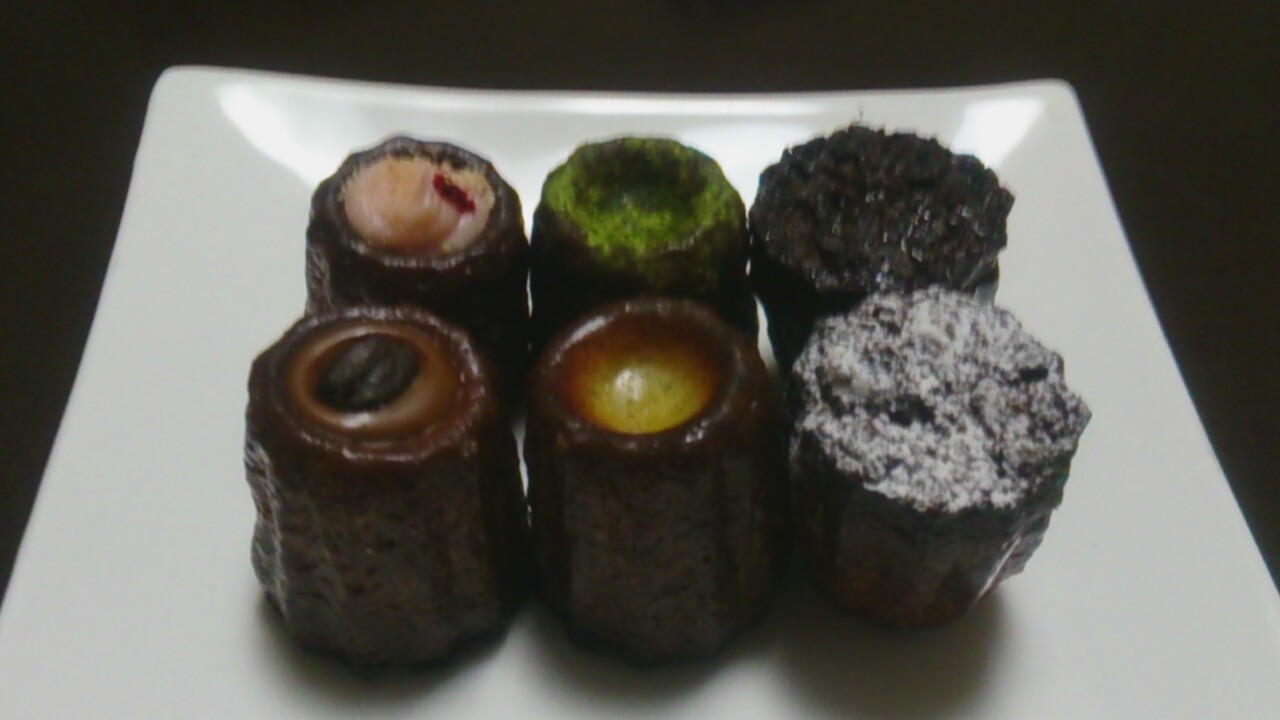 今日は、いちご、抹茶、ほうじ茶、コーヒー、白、黒糖くるみ、6種類のカヌレを買いました。