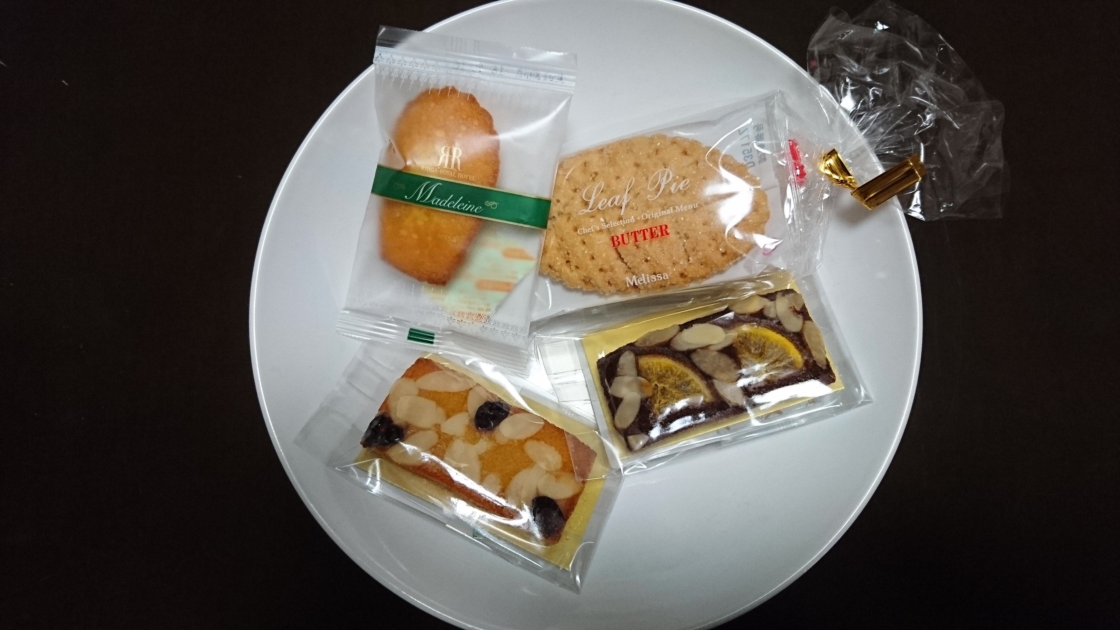 リーフパイ、マドレーヌ、2種類のフィナンシェと、全部で4種類の御菓子を頂きました。