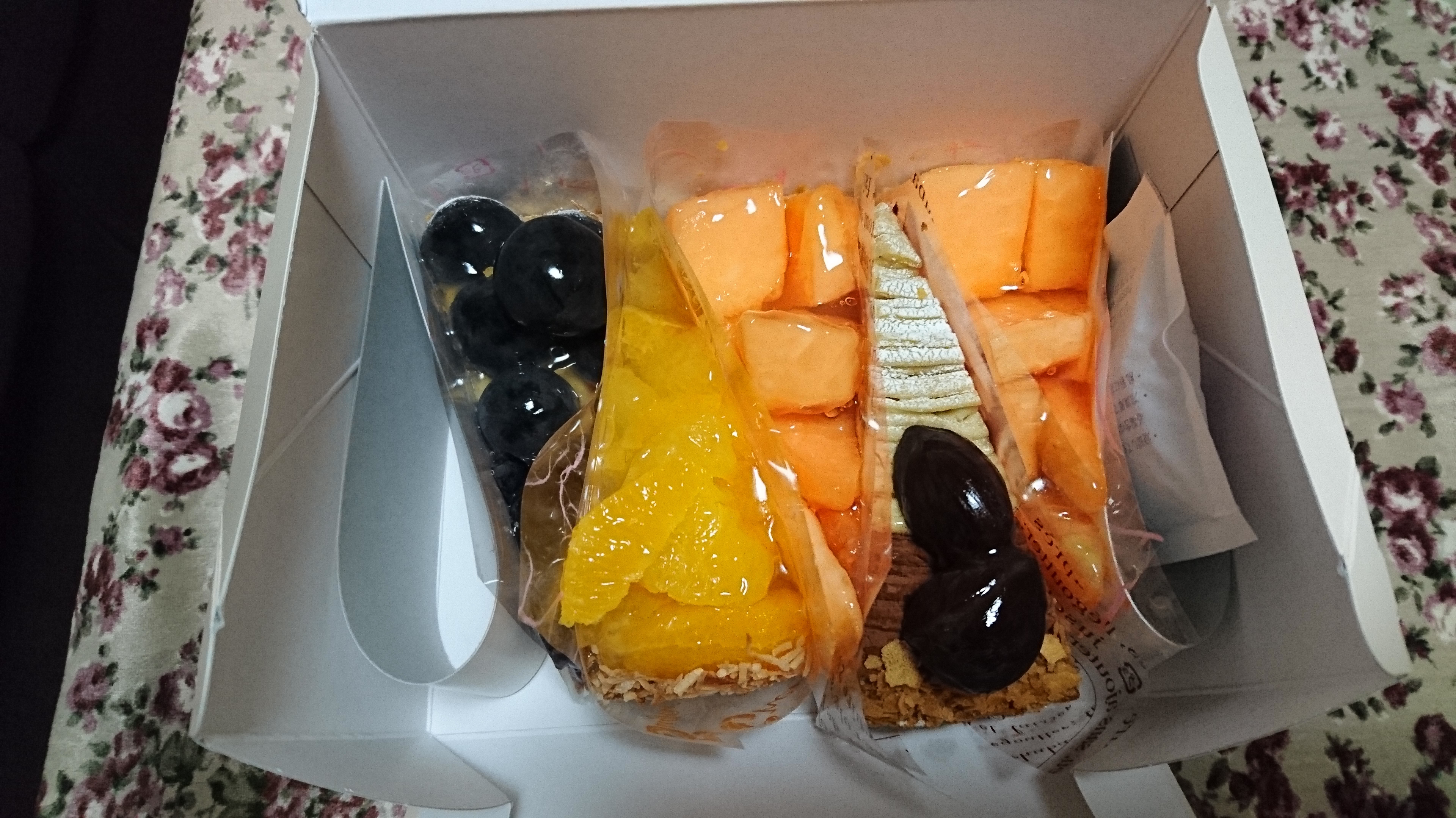 どのタルトも、新鮮なフルーツがたっぷりと飾ってあって、とてもボリュームがありました。マロン、葡萄、みかん、メロン、どれも全部美味しかったですね。
